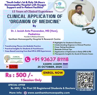 Clinical Application of 'Organon of Medicine' - Dr. J. Jesiah Anto Poovendan , MD (HOM), Pediatrics.