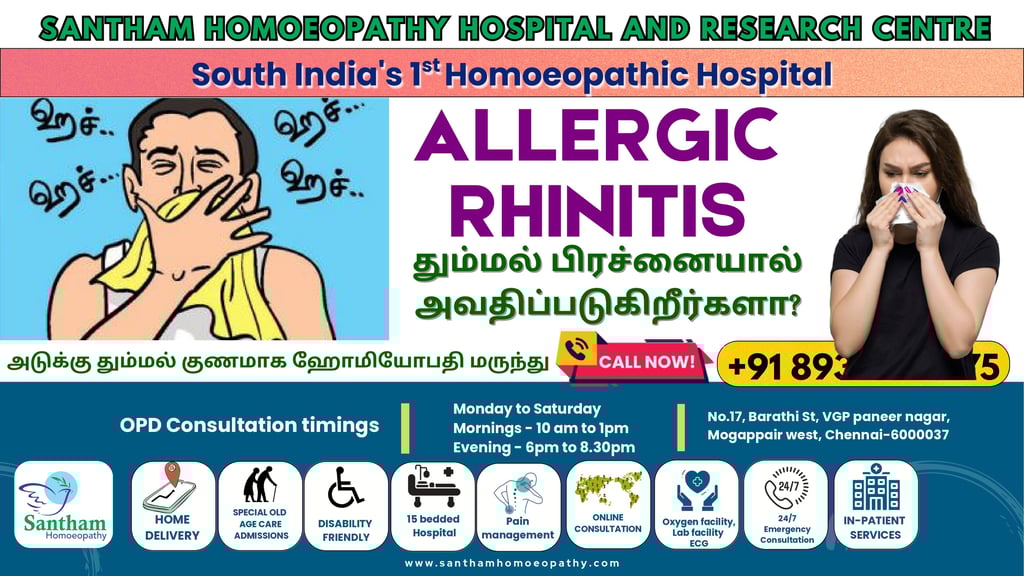 Don’t let allergies disrupt your daily life. Experience safe, gentle, and long-lasting relief through homeopathy at Santham Homeopathy Hospital, Chennai.