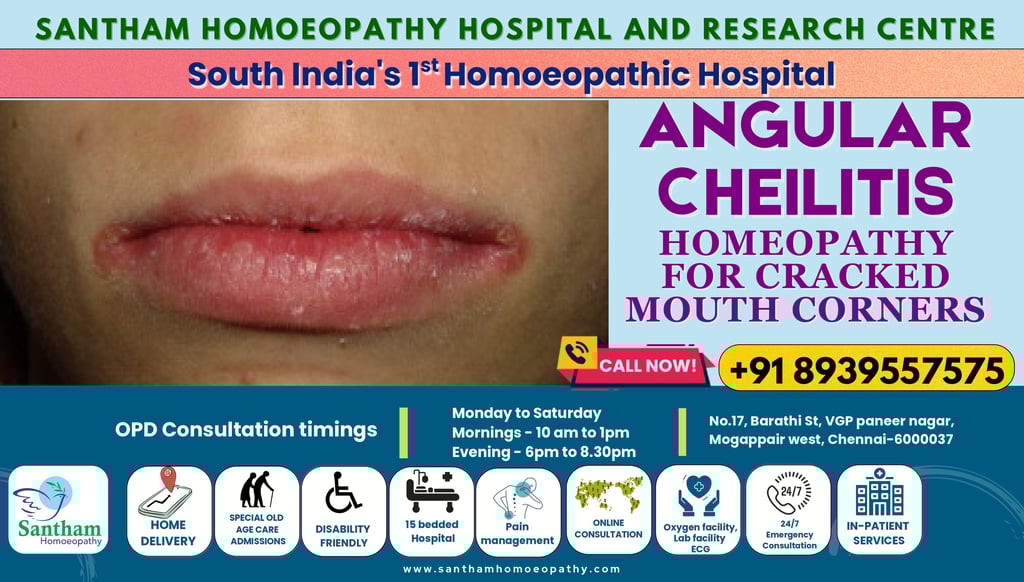 Say goodbye to painful mouth cracks and recurring infections. Heal gently and effectively with homeopathy at Santham Homeopathy Hospital, Chennai.