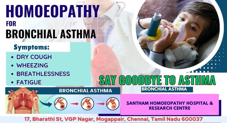 At Santham Homoeopathy Hospital, we understand that asthma isn't just a lung problem—it's a sign of a heightened sensitivity within the body. Our approach to respiratory health is holistic, aiming to reduce the frequency and severity of attacks by addressing the root cause of this hypersensitivity.