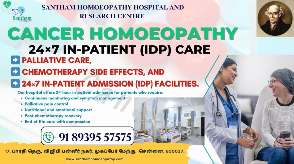 🌿 Comprehensive Palliative Care & Homoeopathy for Cancer Patients — 24×7 In-Patient Support at Santham Homoeopathy Hospital