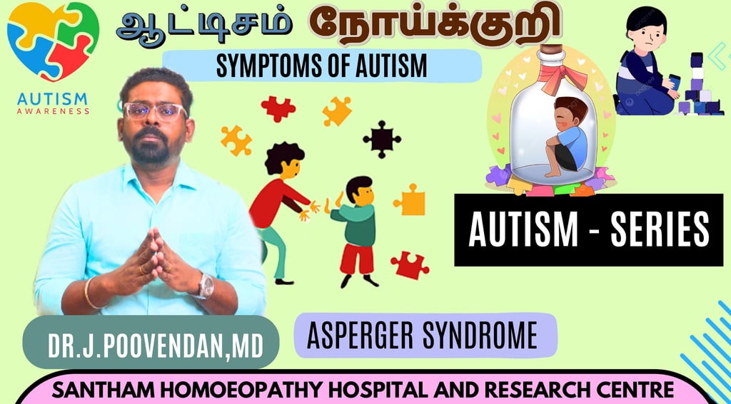 That's a great series of videos! The YouTube channel for Dr. Poovendan J MD Homoeo features an "Autism Series" that discusses the homeopathic approach, symptoms, causes, and treatment for Autism Spectrum Disorder (ASD), including Asperger Syndrome.