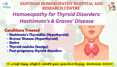 At Santham Homoeopathy Hospital & Research Centre, we treat thyroid problems by focusing on immune balance, hormonal regulation, and root-cause correction, not just symptom control.