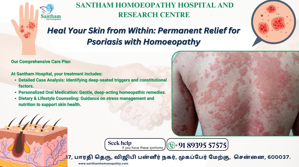 At Santham Homoeopathy Hospital & Research Centre, we understand the deep emotional and physical toll psoriasis takes. We approach this chronic condition not by suppressing the outward symptoms, but by addressing the fundamental immune and metabolic disarray causing the flare-ups.