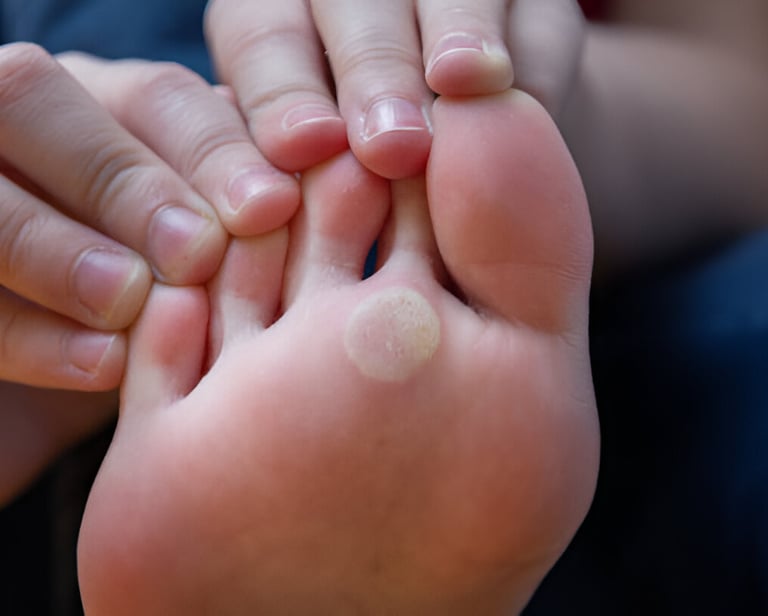 A foot corn is a tiny, sensitive, thickened patch of skin on the foot that develops as a result of pressure or friction. Corns, sometimes referred to as clavi or heloma.
