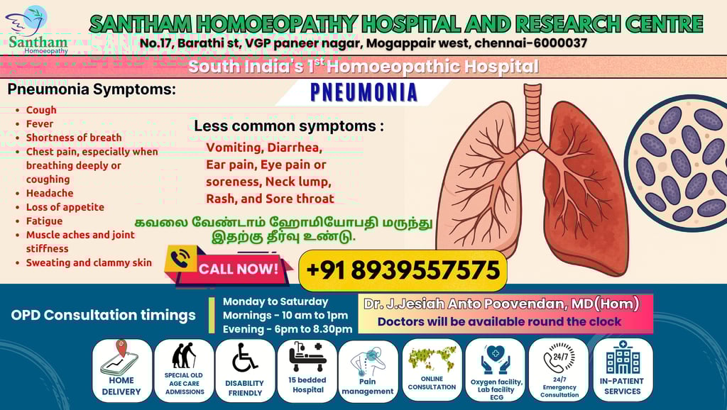 Homeopathic treatment for viral pneumonia, best homeopathy for lung infection, natural cure for viral pneumonia, homeopathic remedies for cough and fever, Santham Homeopathy Hospital, pneumonia treatment without antibiotics, holistic healing for respiratory infections.